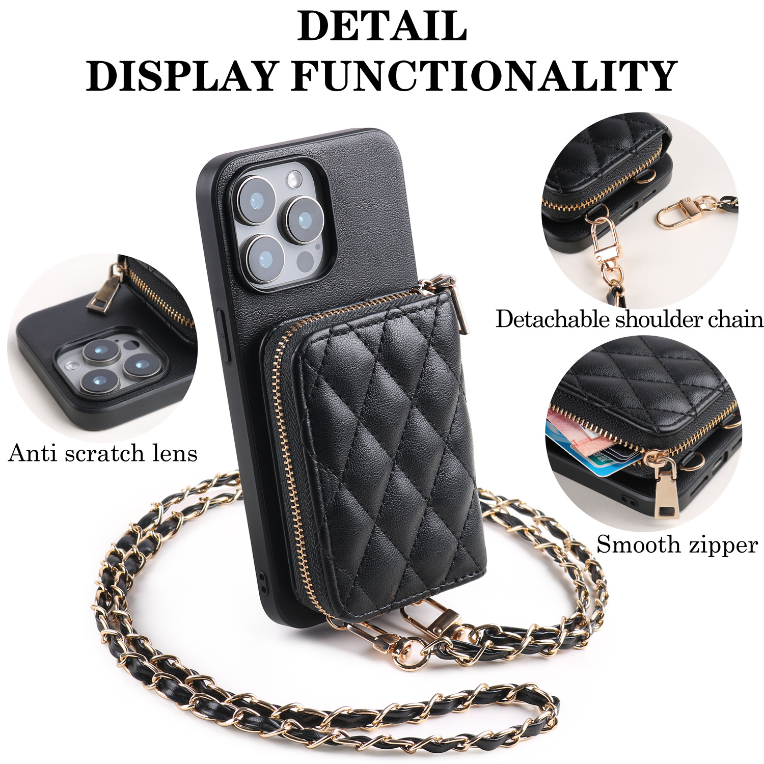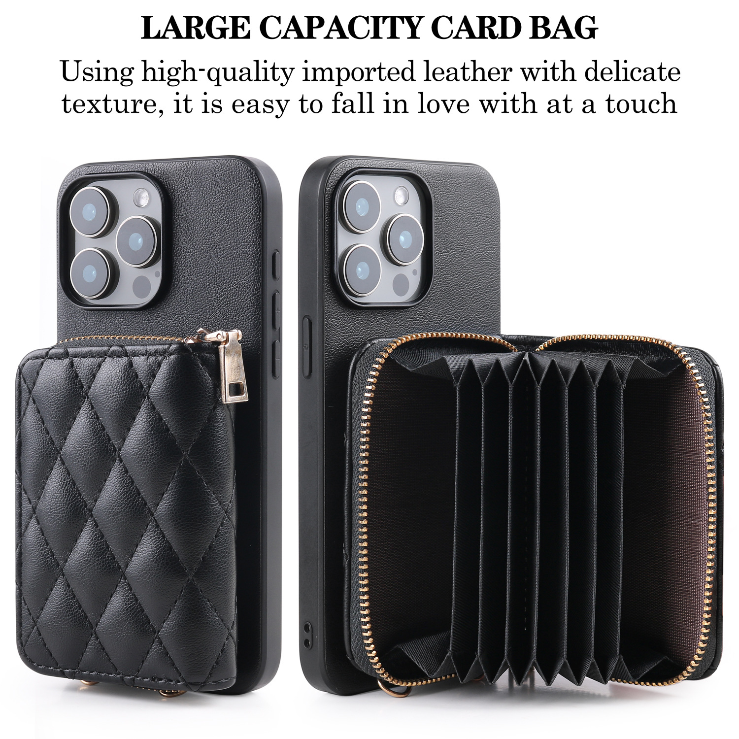 Diamond-patterned Card Holder Case for iPhone